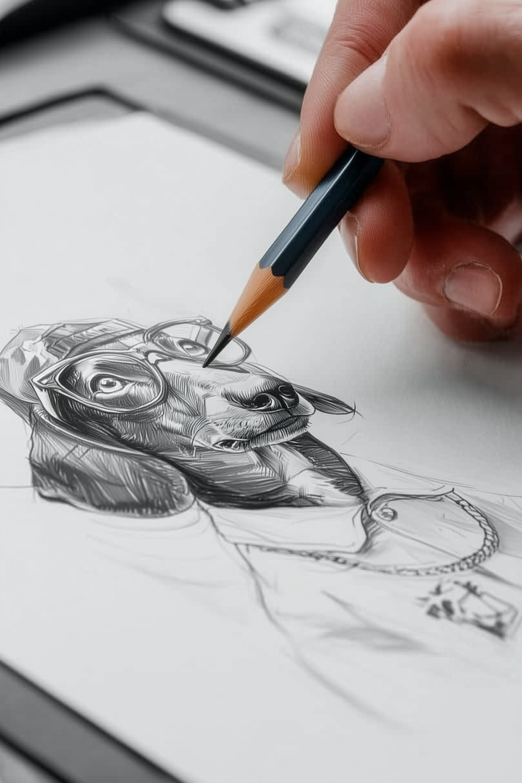 We'll begin with a pencil sketch to perfect the composition. You’ll be able to review and approve this before we move forward with the final pet portrait.